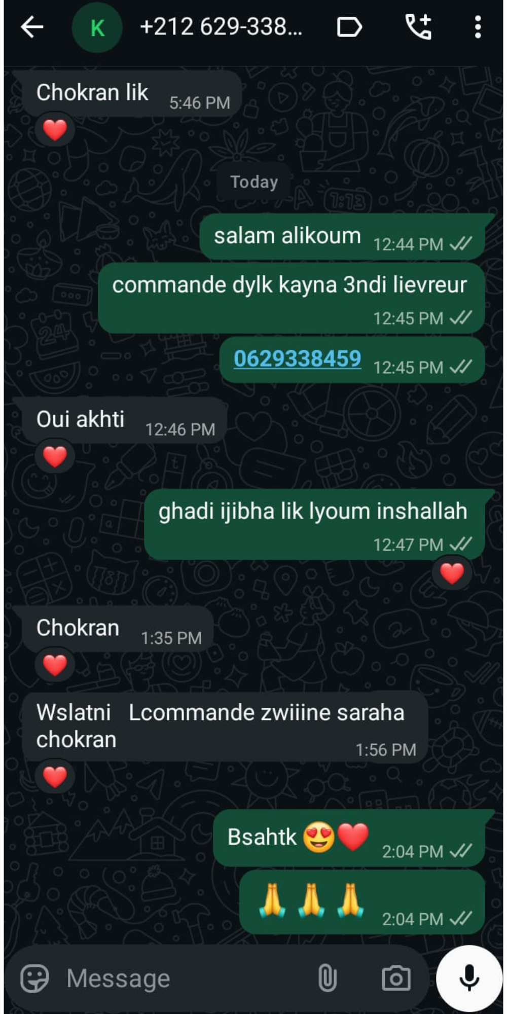 Le paiement à la livraison est disponible pour plus de confiance et de simplicité.