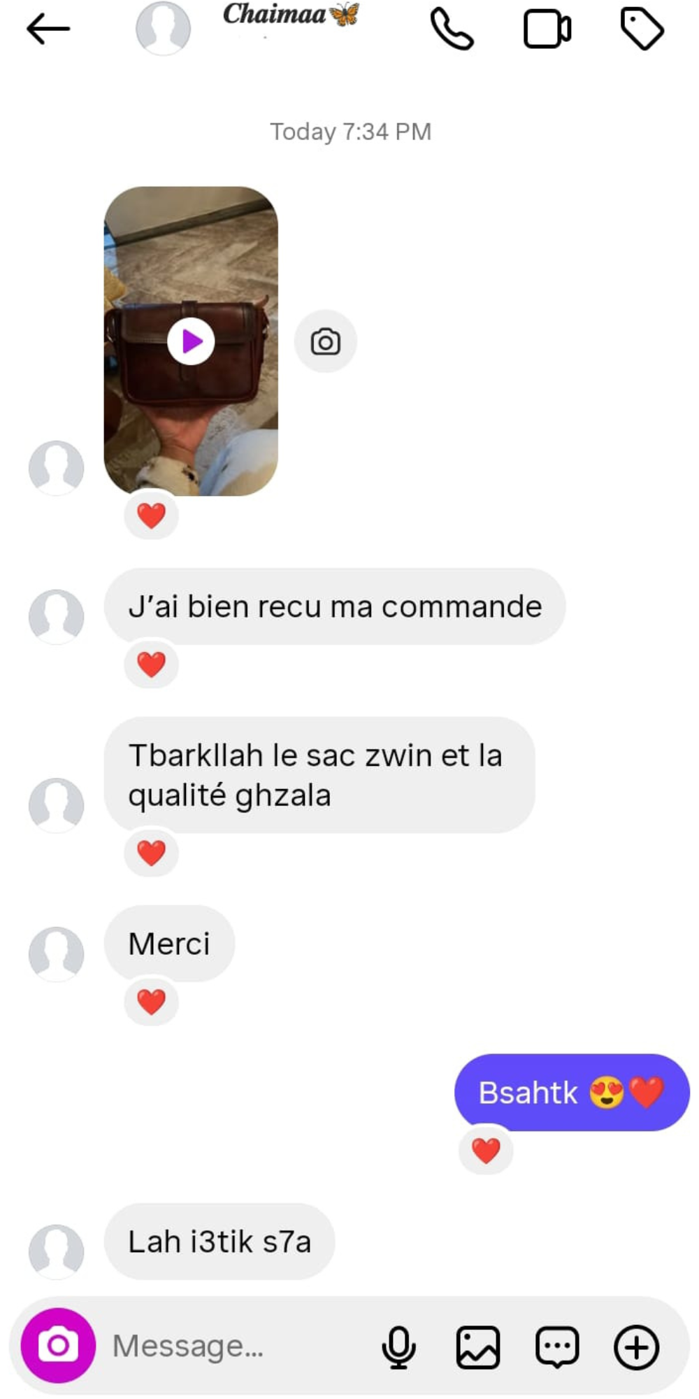 Les produits Fayros sont fabriqués à la main à Marrakech, par l’artisan Abdelkrim, en utilisant des techniques artisanales traditionnelles du travail du cuir.